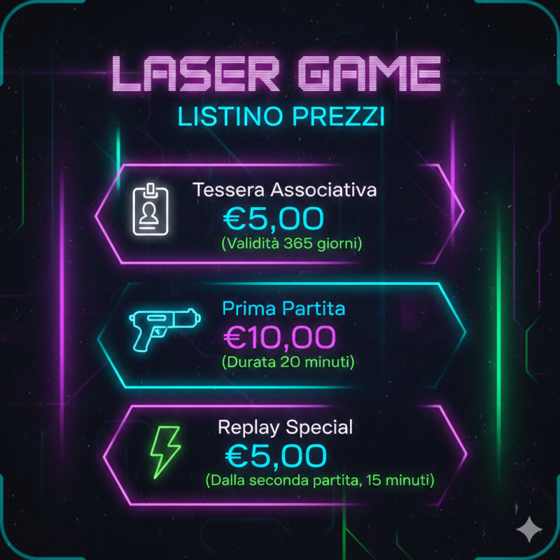Non perdere tempo al bancone, tesserati in anticipo! Il tuo tesseramento rushgame è valido per ben 365 giorni, garantendoti un anno intero di adrenalina pura e un accesso privilegiato alla nostra arena. Velocizza la tua registrazione e lanciati subito nell'azione. Ti aspettiamo per la prossima battaglia!