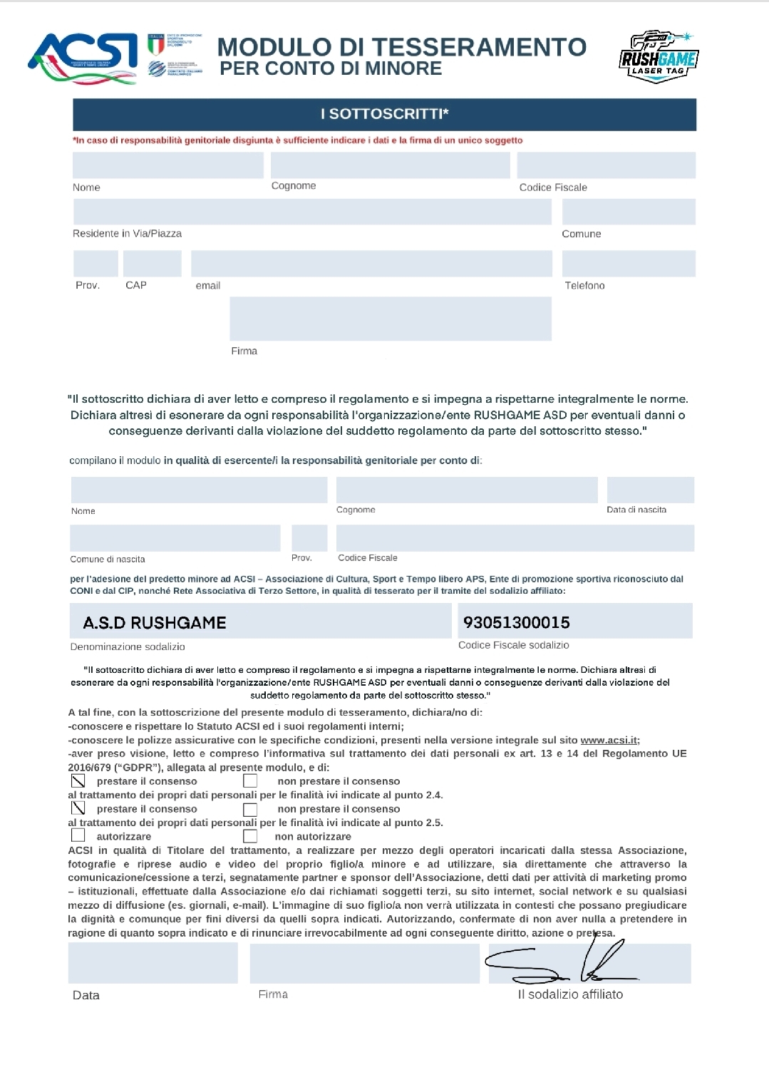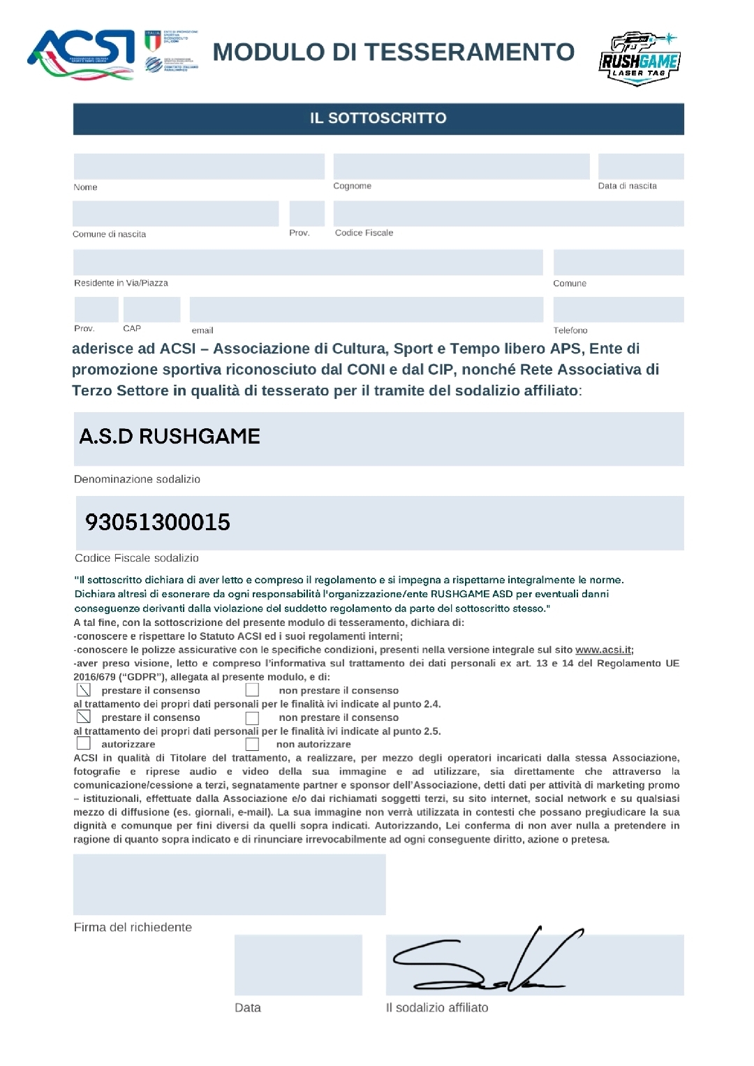 Benvenuto nell'arena rushgame! Qui l'adrenalina è di casa e l'azione non si ferma mai. Per scendere in campo, il tesseramento è obbligatorio, come in ogni associazione sportiva che si rispetti. Ma non preoccuparti, è il tuo biglietto per un divertimento assicurato e una registrazione super veloce. Preparati a vivere un'esperienza unica, senza attese, e a far parte della nostra crew!