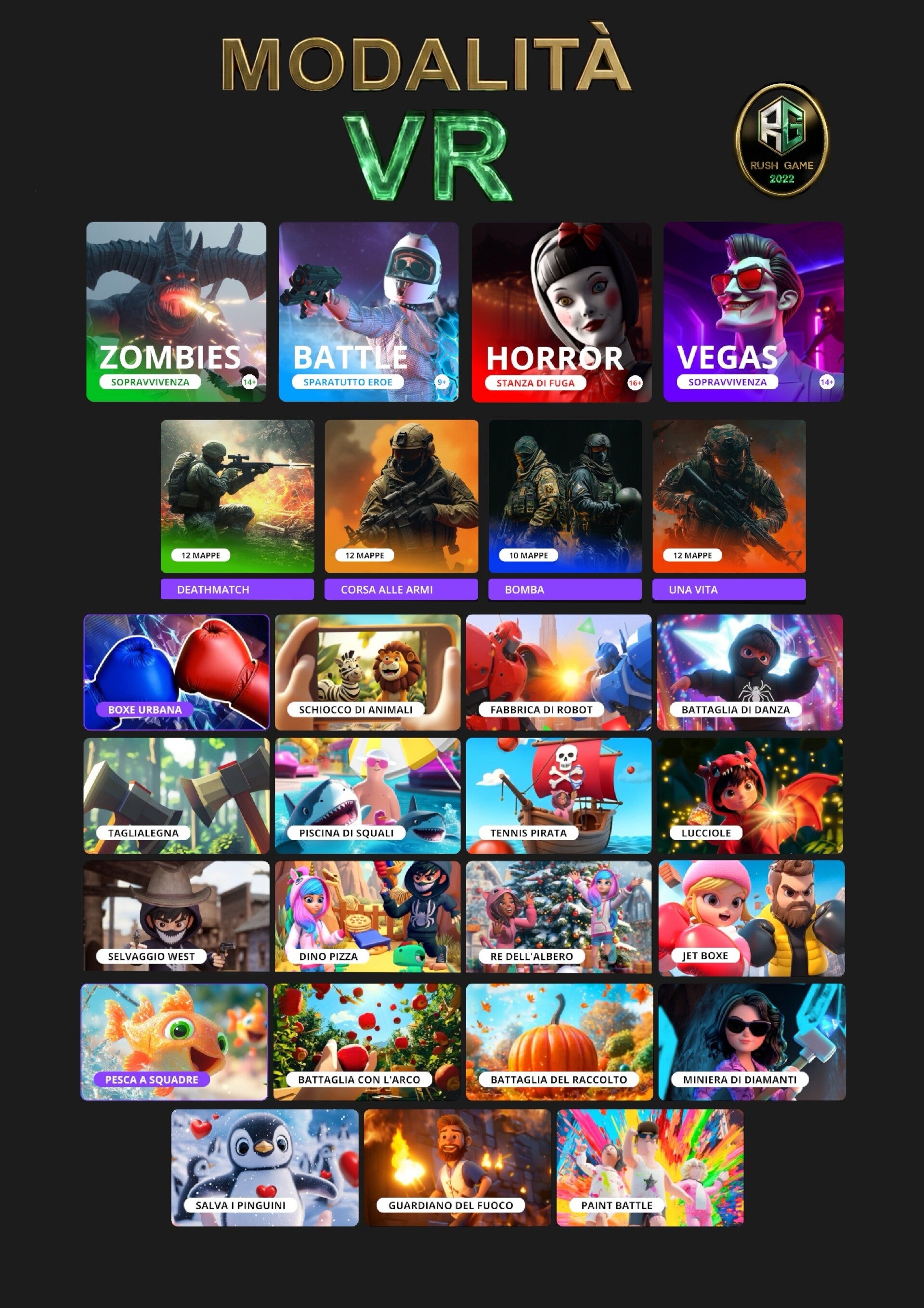 Preparati a entrare in una nuova dimensione. La VR di rushgame ti catapulta in mondi incredibili, dove l'adrenalina è di casa e ogni esperienza è una scarica pura. Senti il brivido, vivi l'azione, e lascia che il gioco abbia inizio.